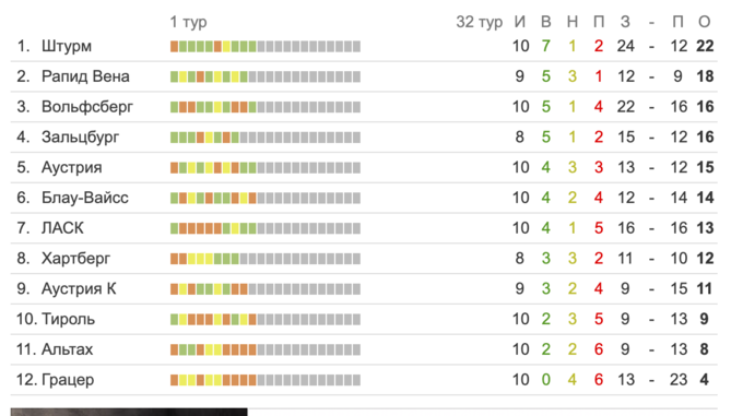 Бундеслига Австрии. 20 октября. 10-й тур.