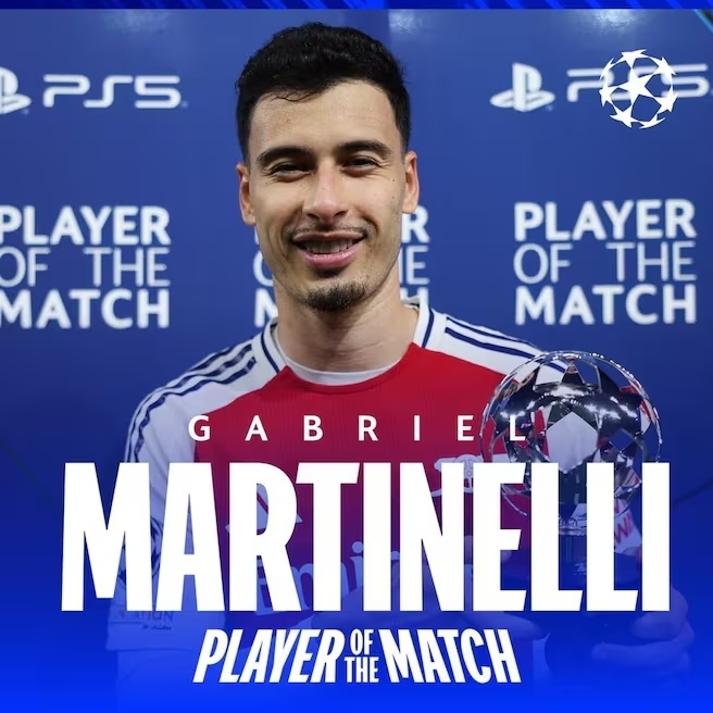 Габриэл Мартинелли из Арсенала получил приз MVP матча Лиги чемпионов