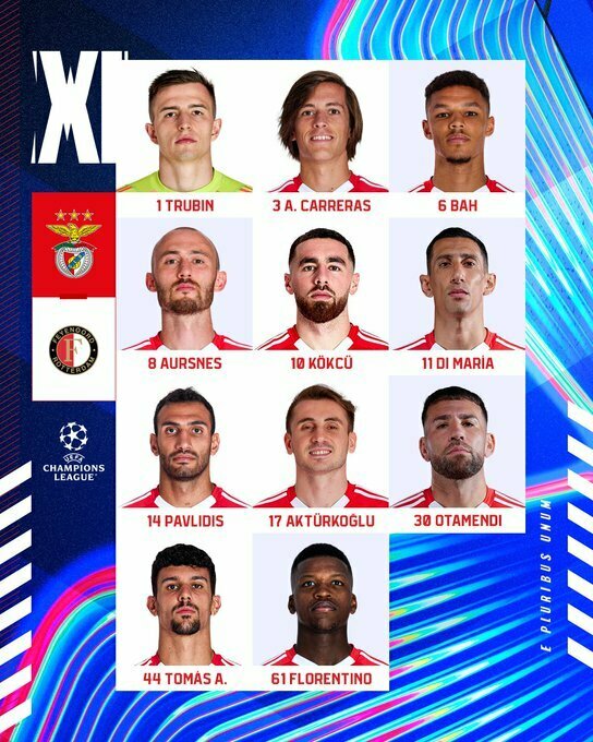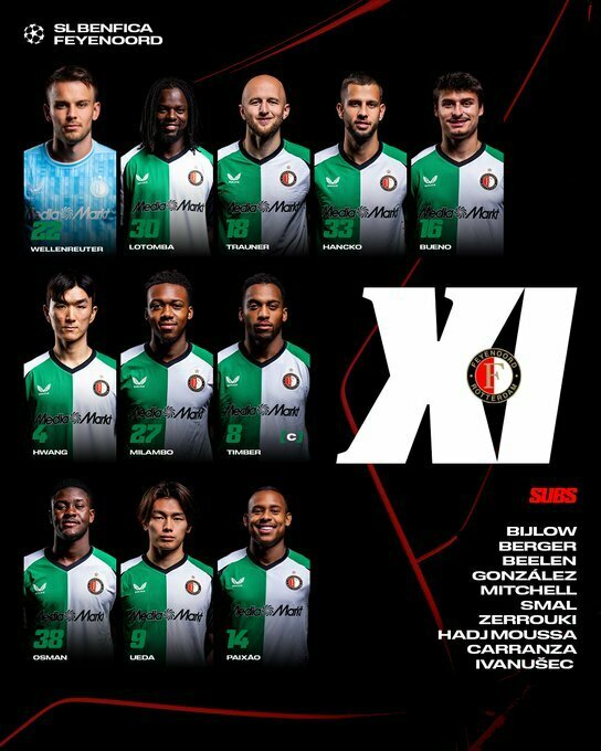 Стартовые составы на матч Бенфика – Фейеноорд: