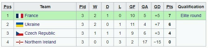 Подопечные Олега Шайтанова в группе 3 сначала уступили команде Франции (1:3), а в следующем поединке разгромили Северную Ирландию (6:0).