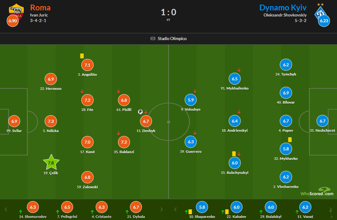 Оценки WhoScored за матч Рома – Динамо (1:0)