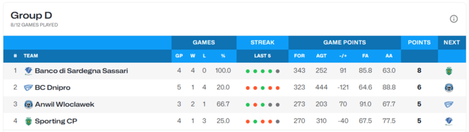 Кубок Европы ФИБА. Группа D, 5-й тур