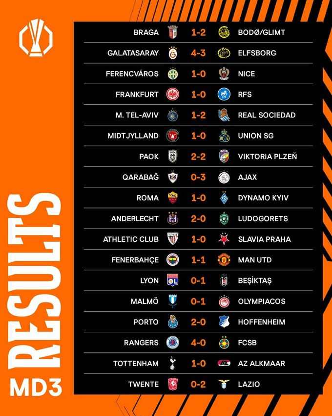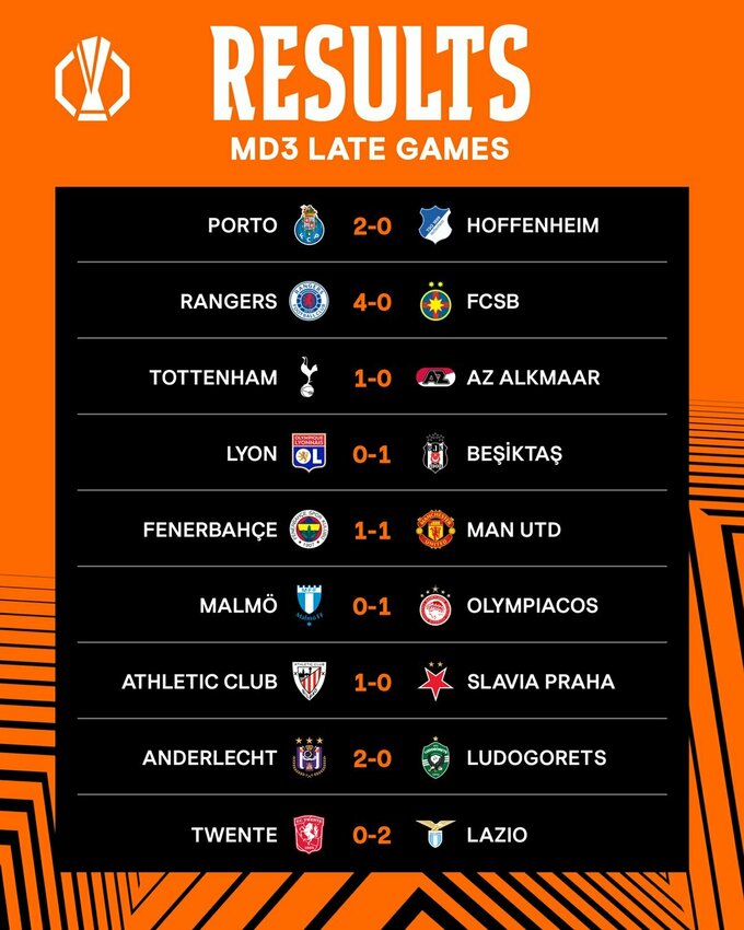 Вечером 24 октября состоялись матчи 3-го тура Лиги Европы.