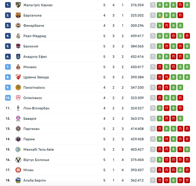 В течение недели состоялись матчи 5-го раунда баскетбольной Евролиги