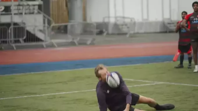 Во время тренировки регбийный мяч попал Питеру Краучу в лицо. Он явно не был в восторге от такого дебюта, но в конце концов продолжил тренировку.