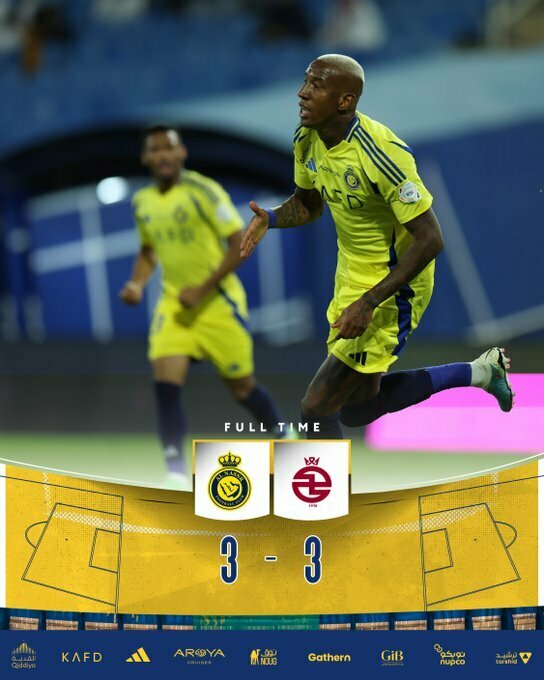Клуб «Аль-Наср» на выезде устроил голевую перестрелку с командой «Аль-Холуд». В результате поединок закончился со счетом 3:3.