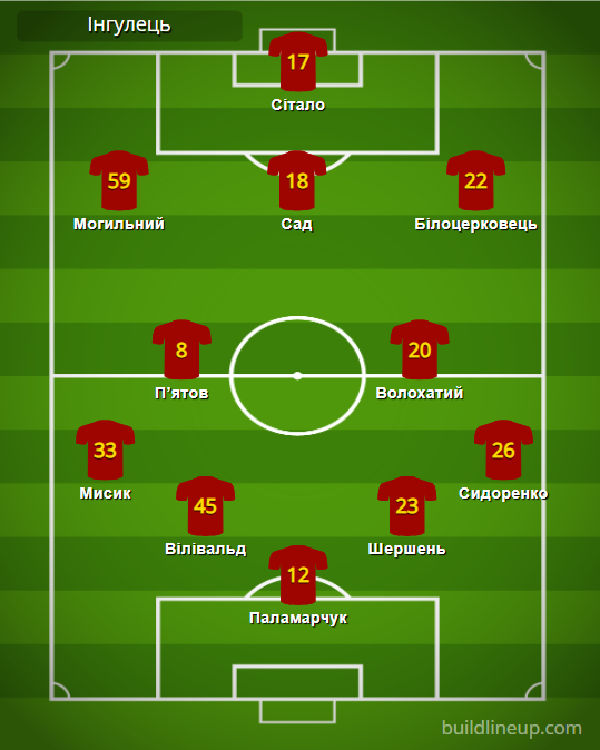 «Ингулец»: Паламарчук – Мысык (Резепов, 74), Виливальд, Шершень, Сидоренко – Пятов, Волохатый (Лисняк, 81) – Могильный (Козыренко, 68), Сад (Пушкарев, 68), Белоцерковец – Ситало (Кисленко, 74).