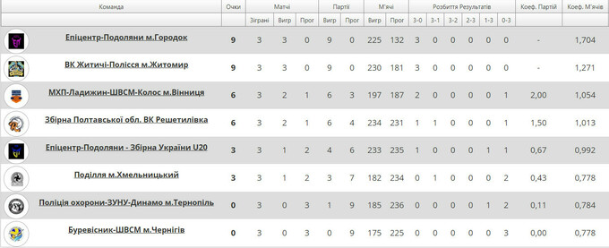 Актуальная таблица украинской Суперлиги