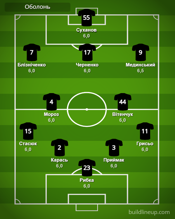 «Оболонь»: Рыбка – Стасюк, Карась, Приймак, Грисьо – Мороз (Тарануха, 46), Витенчук (Слободян, 67) – Близниченко (Груша, 67), Черненко, Мединский – Суханов (Теслюк, 77).