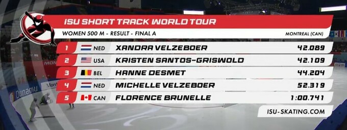 Мировой тур шорт-трека. Кшандра Фелзебур победила на 500 метров