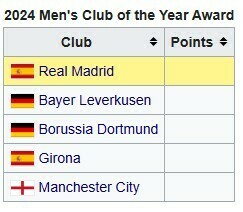 Помимо главной индивидуальной награды, также был определен лучший клуб. Им стал Реал Мадрид, который в прошлом сезоне выиграл Лигу чемпионов, Ла Лигу и Суперкубок УЕФА. Отметим, что сливочные бойкотировали церемонию.