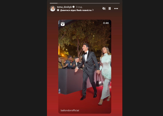 Артем сделал репост видео официального IG-аккаунта «Ballon D'or» с их прибытием на торжество вместе с женой Юлией – пара прибыла вместе с одноклубником нападающего по «Роме» Матсом Хуммельсом и его очаровательной девушкой.