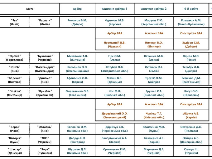 18:00. Рух – Карпаты. «Арена Львов». Арбитр – Виталий Романов (Днепр). Арбитр VAR – Владимир Новохатний (Черкассы)