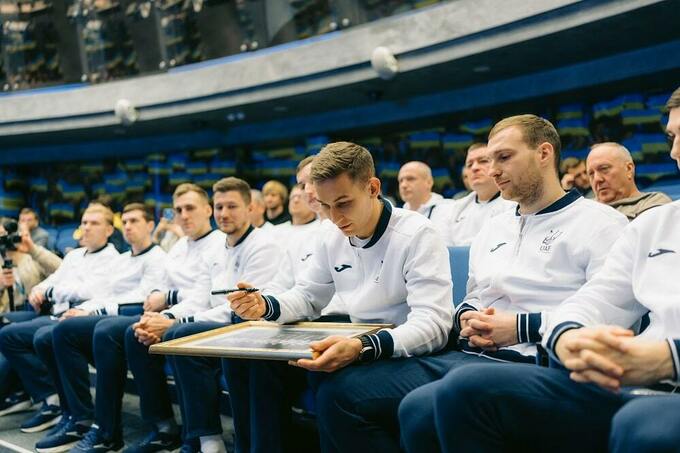 Президент УАФ также попросил каждого игрока подписать историческую фотографию команды по награждению на чемпионате. Это фото, которое станет частью музея уважения к УАФ, символизирует важный этап в истории украинского спорта.