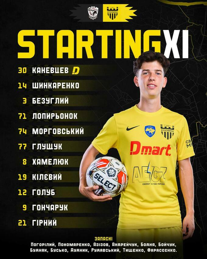 Пробой – Буковина. Стартовые составы на матч 1/8 финала Кубка Украины
