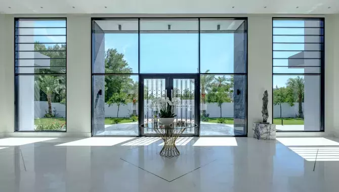Этот дом имеет шесть больших спален, бассейн, теннисный корт и игровую комнату. Комплекс огражден высокими воротами, поэтому частная жизнь семьи тут уважается.