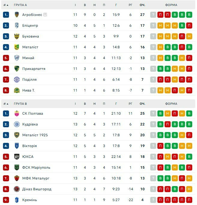 2 ноября проходят поединки 15-го тура Первой лиги чемпионата Украины.