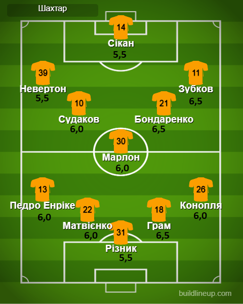 «Шахтер»: Ризнык – Конопля, Грам, Матвиенко, Педро Энрике – Бондаренко (Педриньо, 69), Марлон (Степаненко, 56), Судаков – Зубков, Сикан (Эгиналду, 69), Невертон