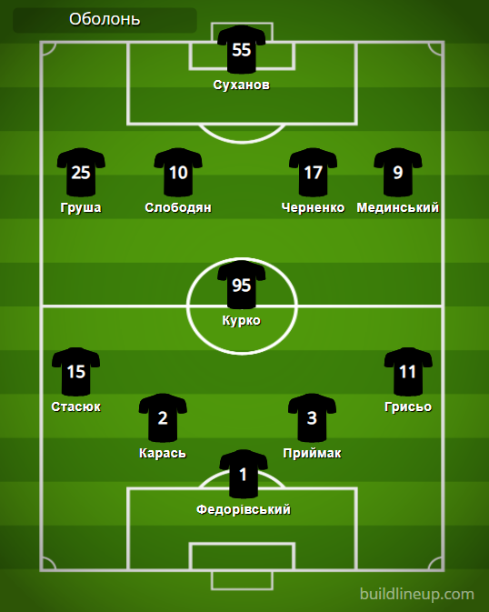 «Оболонь»: Федоровский – Стасюк, Карась, Приймак, Грисьо (Близниченко, 32) – Курко (Витенчук, 65) – Груша, Слободян (Бычек, 65), Черненко, Мединский – Суханов (Теслюк, 81).