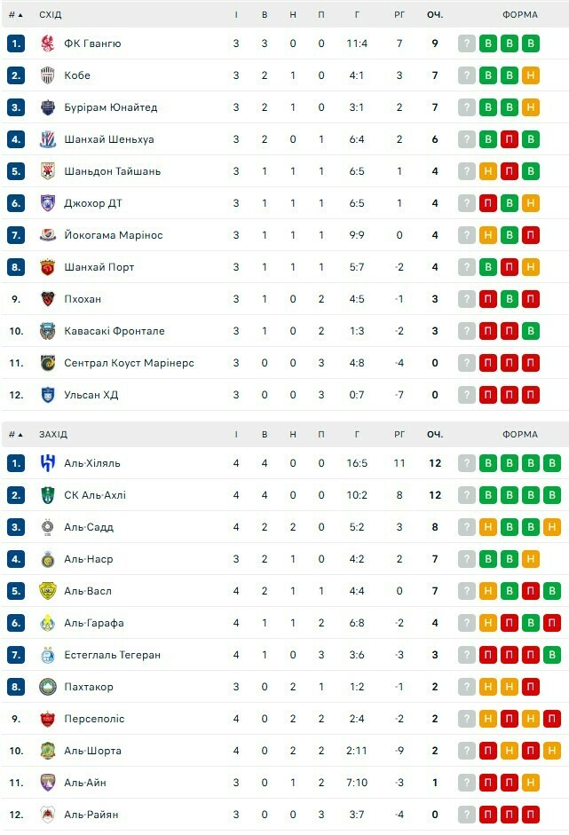 Саудовские клубы Аль-Хиляль и Аль-Ахли набрали по 12 очков из 12 и возглавляют турнирную таблицу Западной зоны.