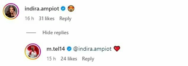 19-летний вингер «Баварии» Матис Тель встречается с «Мисс Франция-2023» Индирой Ампио.