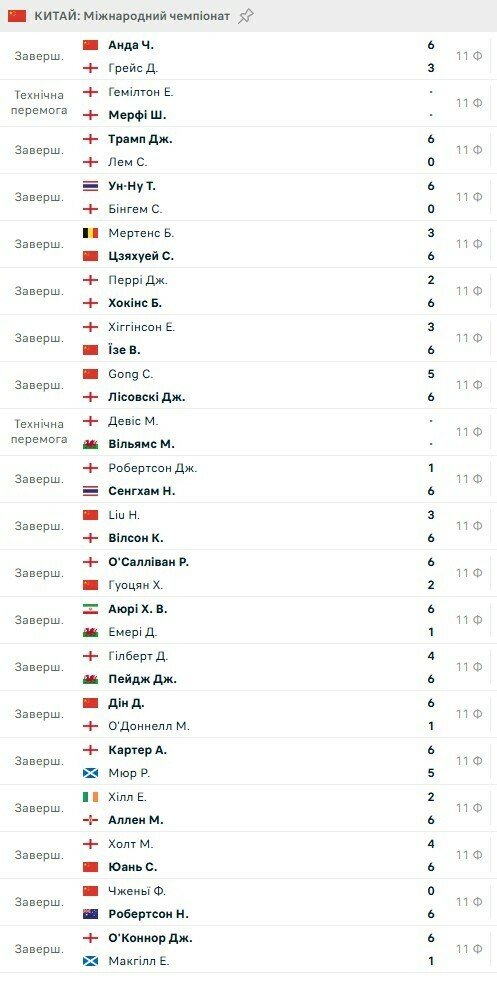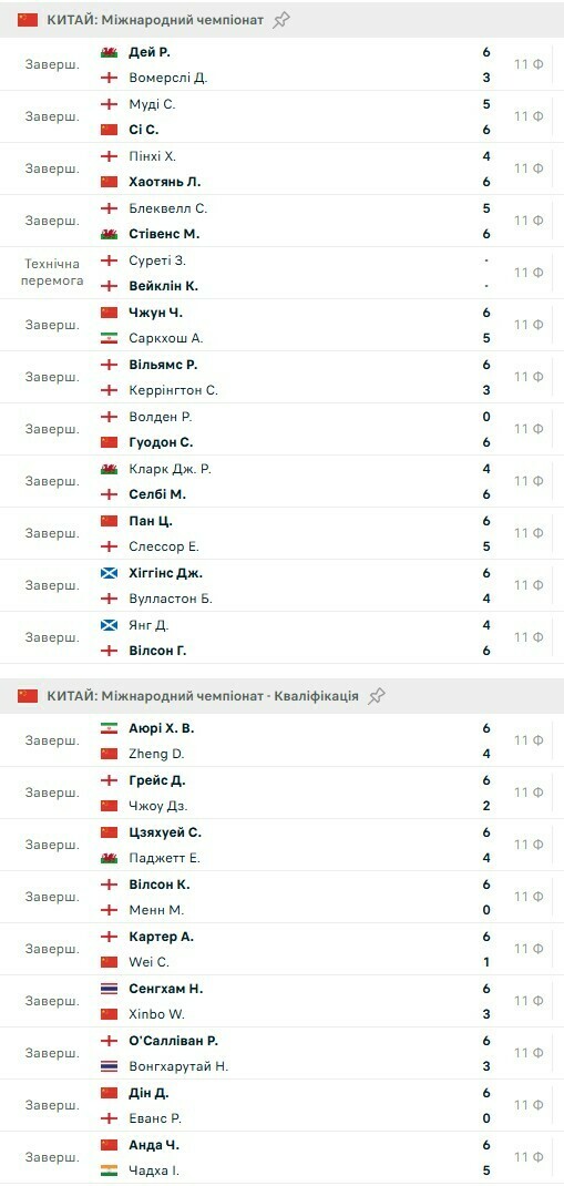 Также продолжает борьбу Джадд Трамп, разгромивший Сандерсона Лама (6:0). Турнир в Китае продлится до 10 ноября.