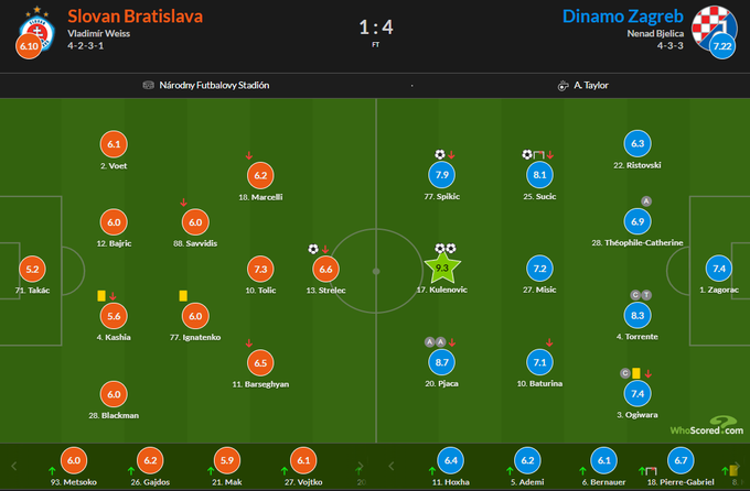 Оценки WhoScored за матч Слован – Динамо Загреб (1:4)