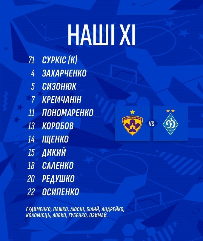 Запас: Гудименко, Пашко, Люсин, Билый, Андрейко, Коломиец, Лобко, Губенко, Озимай