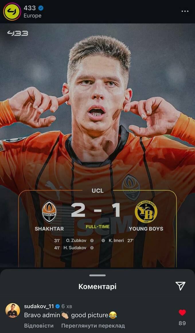 Полузащитник донецкого «Шахтера» Георгий Судаков с юмором подошел к оценке выбора фото на послематчевый пост о победе «горняков» над «Янг Бойз» (2:1).
