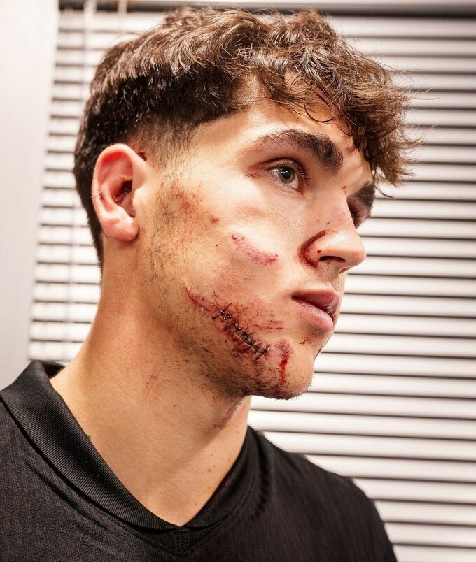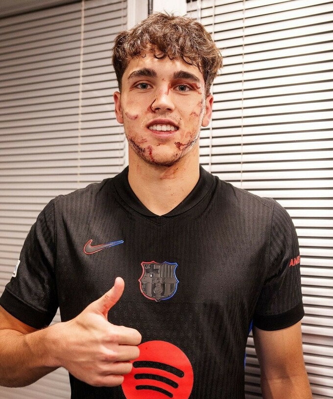 Оказалось, что соперник свои ударом разбил лицо молодому таланту Барселоны. Клубным медикам пришлось наложить швы, чтобы остановить кровотечение.