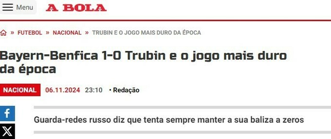 «Российский вратарь говорит, что всегда старается сыграть на ноль», – написано на сайте A Bola.