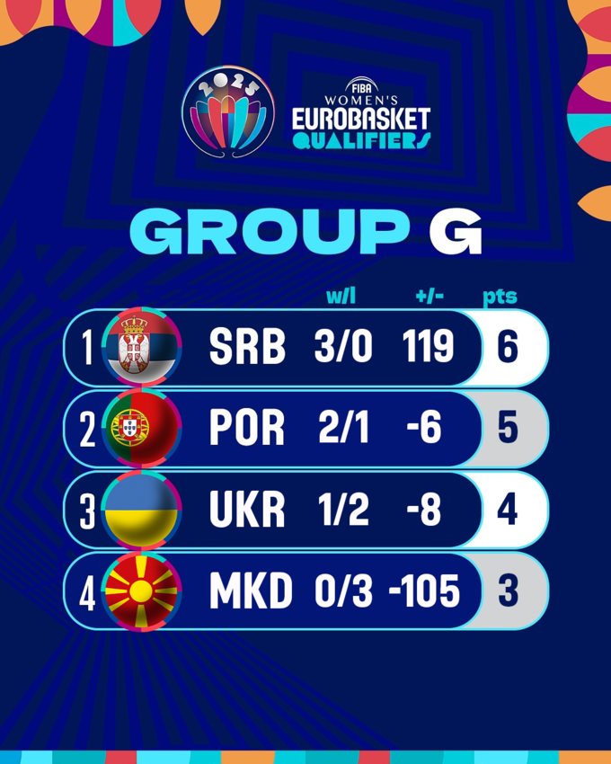 Следующий матч в отборе женская сборная Украины сыграет 10 ноября в Риге против команды Сербии, которая победила Португалию (71:37).