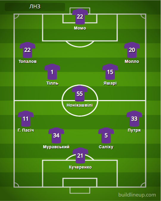 ЛНЗ: Кучеренко – Г. Пасич, Муравский, Салиху, Путря – Тилль (Наумец, 77), Ноникашвили, Яшари – Топалов (Эйнел, 60), Момо, Молло (Халайла, 77).