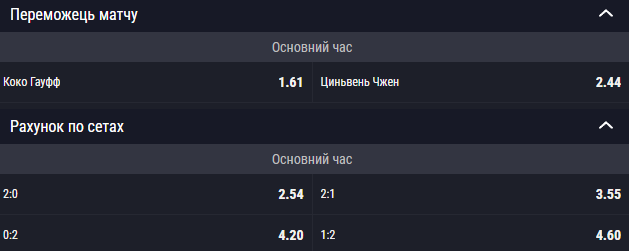 Основные котировки на матч Коко Гофф – Чжэн Циньвень: