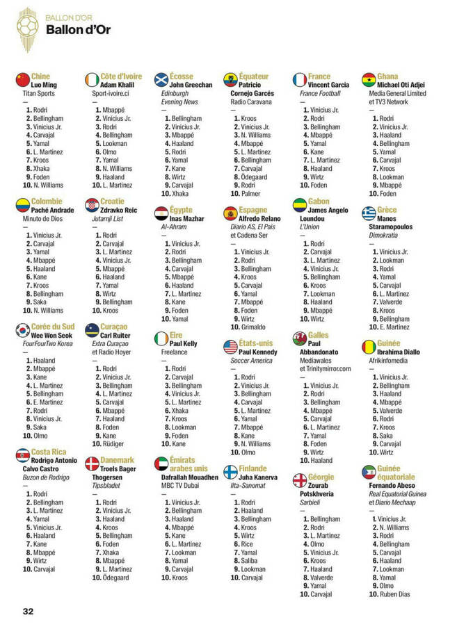 Французское издание L'Équipe раскрыло подробности голосования на награду Золотой мяч 2024.