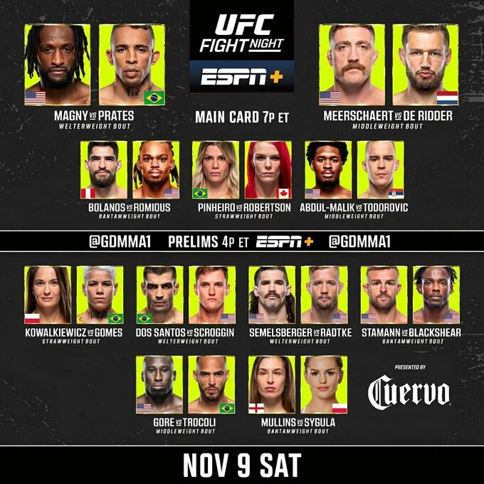 UFC Fight Night 247. Нил Магни – Карлос Пратес. Смотреть онлайн. LIVE