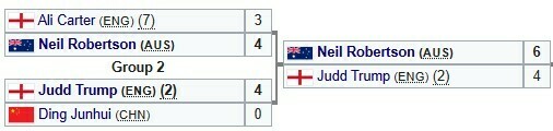 - Нил Робертсон (Австралия) – Джадд Трамп (Англия) – 6:4