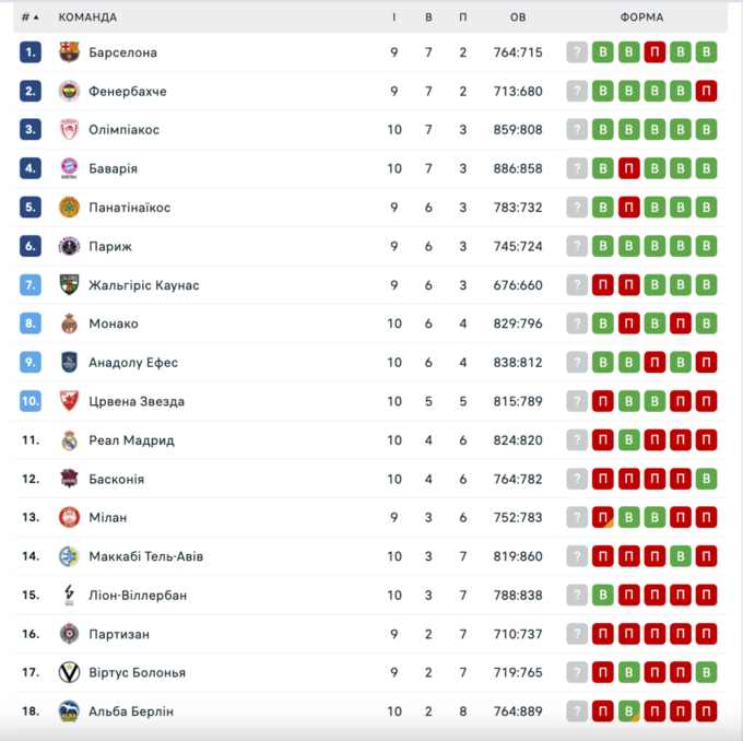 Израильский «Маккаби» уступил греческому «Олимпиакосу». Французский «АСВЕЛ» одолел сербскую «Црвену Звезду», а «Баскония» проиграла «Монако».