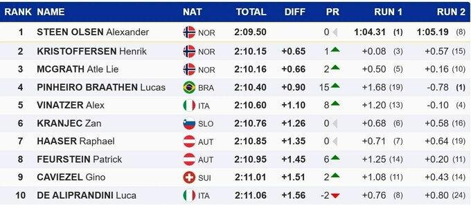 Второе место занял Хенрик Кристофферсен, всего на 0.1 обогнав Атле Ли Макграта.