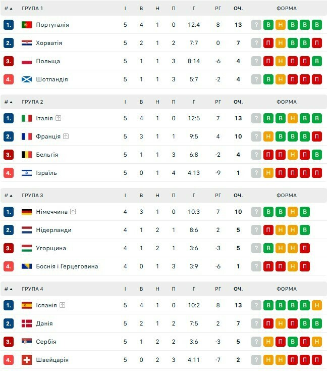 Роналду на высоте. Турнирные таблицы: Португалия и Испания выиграли группы