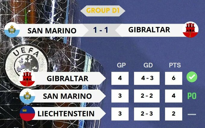 21:45. Сан-Марино – Гибралтар – 1:1
