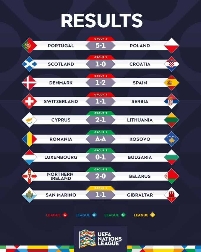 Вечером 15 ноября состоялись поединки 5-го тура Лиги наций.