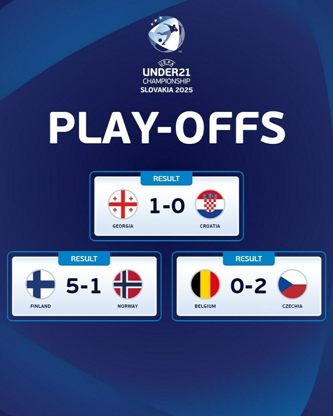 На чемпионат Европы 2025 U-21 вышли: Словакия (хозяин), Италия, Испания, Нидерланды, Германия, Румыния, Англия, Португалия, Словения, Дания (победители групп), Украина, Франция, Польша (лучшие вторые места).
