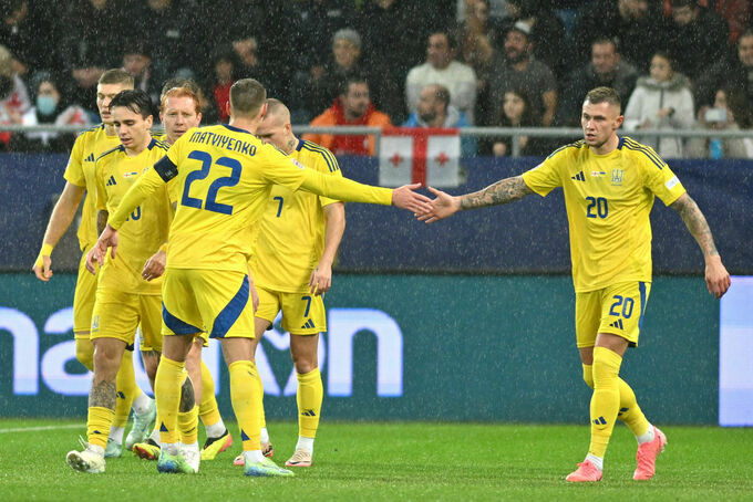 Первый голевой момент в матче создали грузины, которые провели стремительную контратаку. Ее завершал Зивзивадзе, но Миколенко успел помешать сопернику. А через несколько мгновений Трубин продемонстрировал реакцию после удара Кварацхелии. «Сине-желтые» сразу организовали ответ, который привел к желаемому результату. В ходе контратаки Мудрик прострелил с правого полуфланга, и Кверквелия срезал мяч в собственные ворота.
