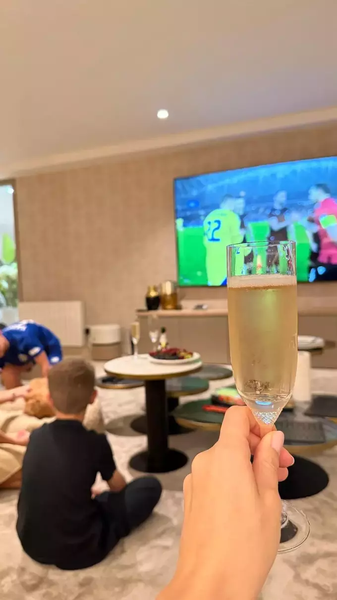 ФОТО. С бокалом игристого. Вот как жена Реброва смотрела матч сборной