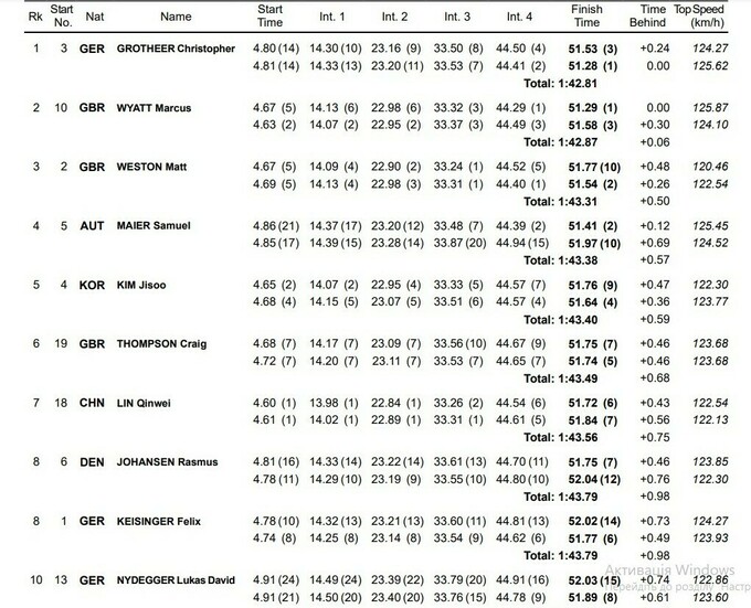 - 1. Кристофер Гретхер (Германия) 1:42.81