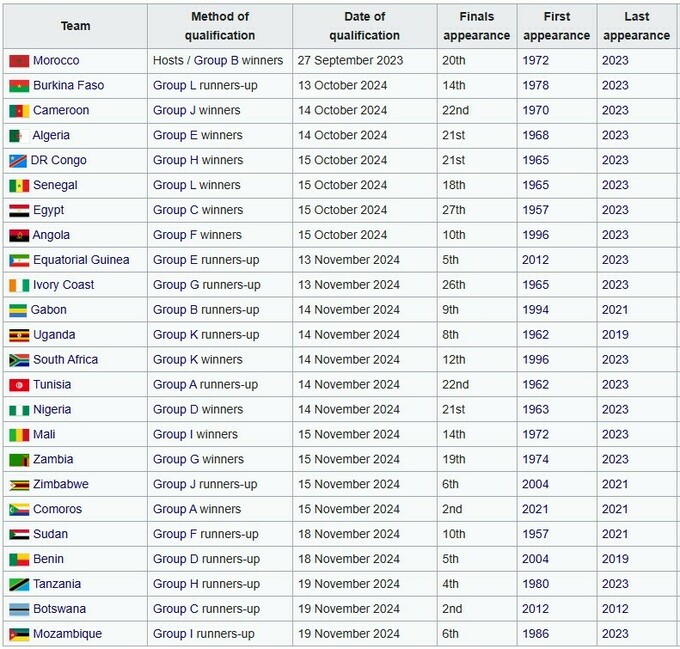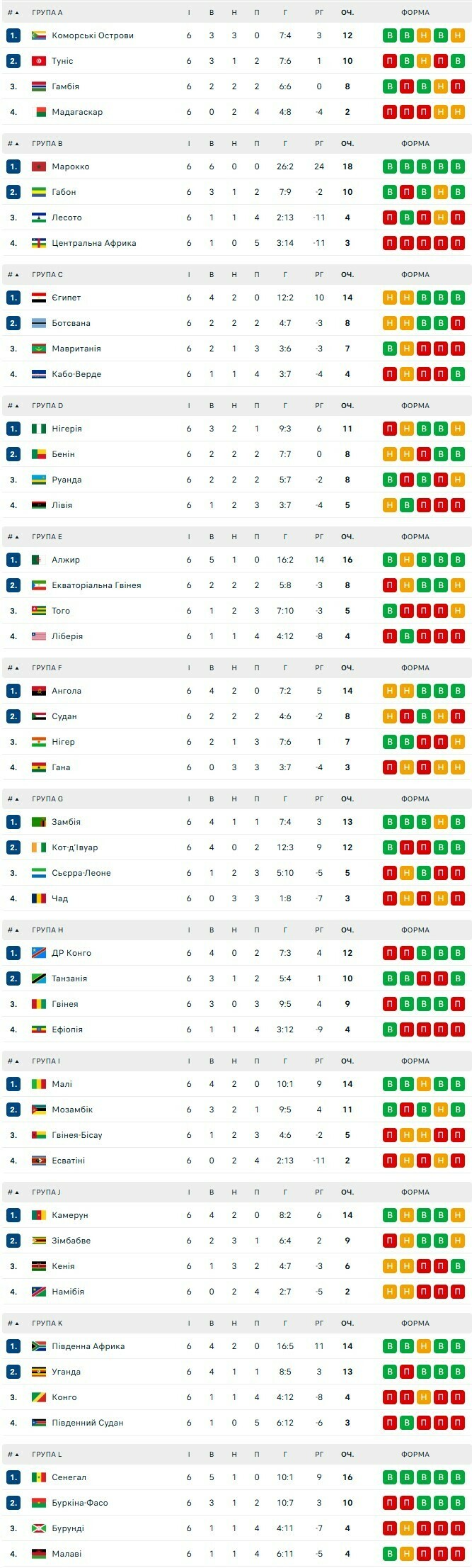 В финальный раунд Кубка африканских наций, который состоится в Марокко (21 декабря 2025 – 18 января 2026), выйдут по две лучшие сборные из каждой группы.
