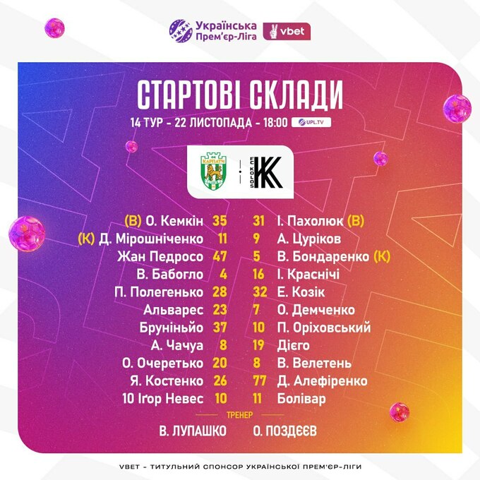 Карпаты – Колос. Стали известны стартовые составы