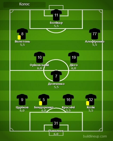 «Колос»: Пахолюк, Цуриков, Бондаренко, Красничи, Козик, Демченко, Ориховский, Диего (Безбородько, 83), Велетень (Третьяков, 59), Алефиренко (Гусол, 59), Боливар (Паулаускас, 83)