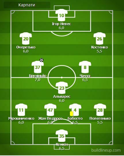 «Карпаты»: Кемкин, Мирошниченко, Жан Педросо, Бабогло (Векляк, 81), Полегенько, Альварес, Бруниньо (Шах, 72), Чачуа (Клименко, 90), Очеретько (Стенио, 82), Костенко (Пидлепенец, 72), Игор Невес